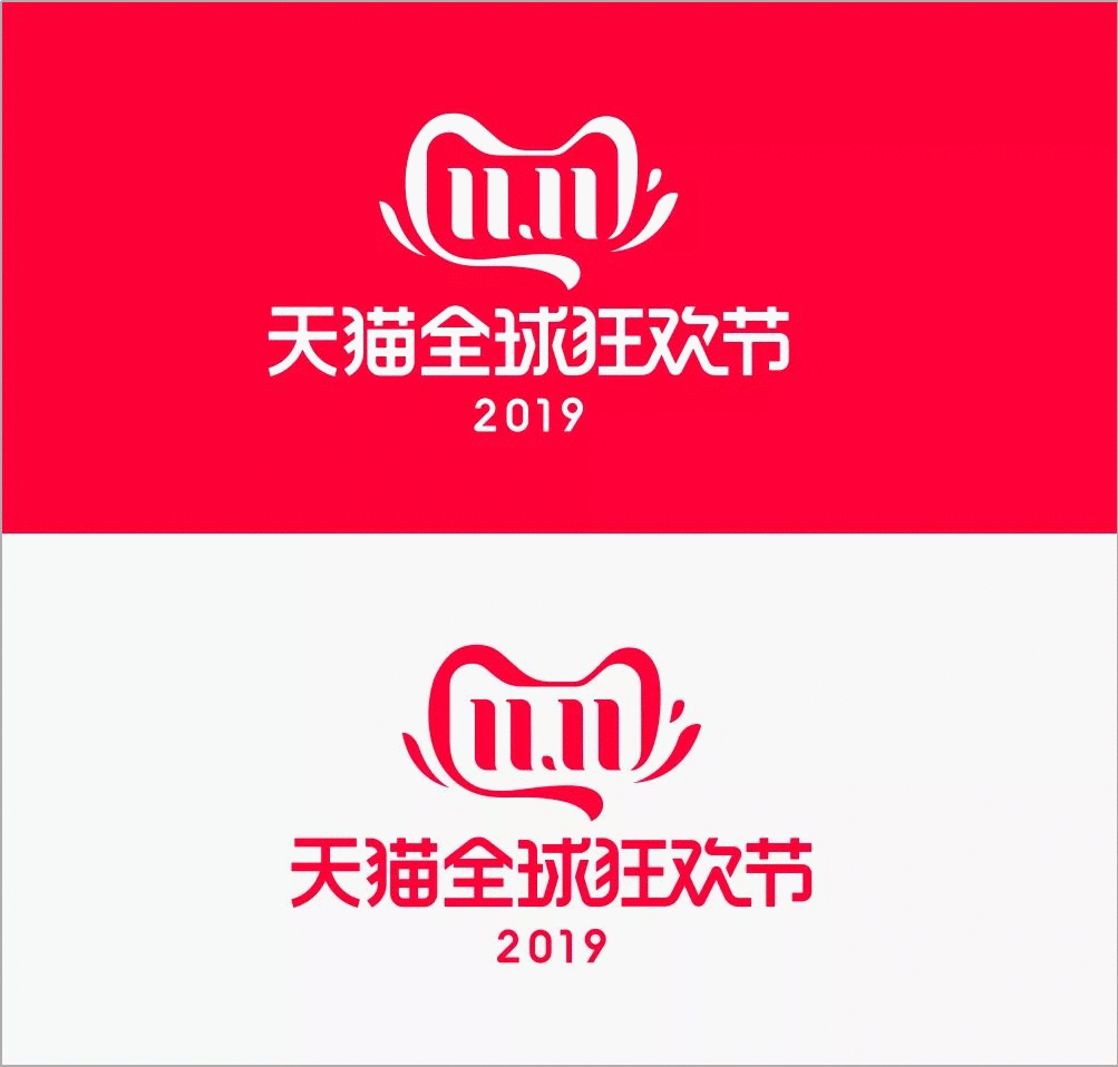 一個簡單的雙11,恰好構成了天貓的靈魂般 的眼睛; 在貓頭的左右兩邊,分別有類似兩大條彩帶結向外拋出,就好像是天貓的兩只小 手 在搖擺,寓意著“大家一起狂歡”。